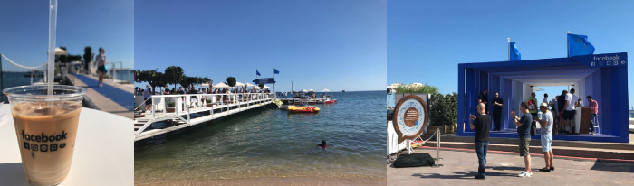 カンヌ3日目がスタート。会場エリア内のビーチでは、Facebookがコミュニケーションスペースを設けており、大勢の参加者で賑わっていました。