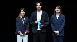 授賞式で登壇する西森、小坂井、市川(右側3人:博報堂/博報堂DYメディアパートナーズ 人事室タレントアクイジション部)
