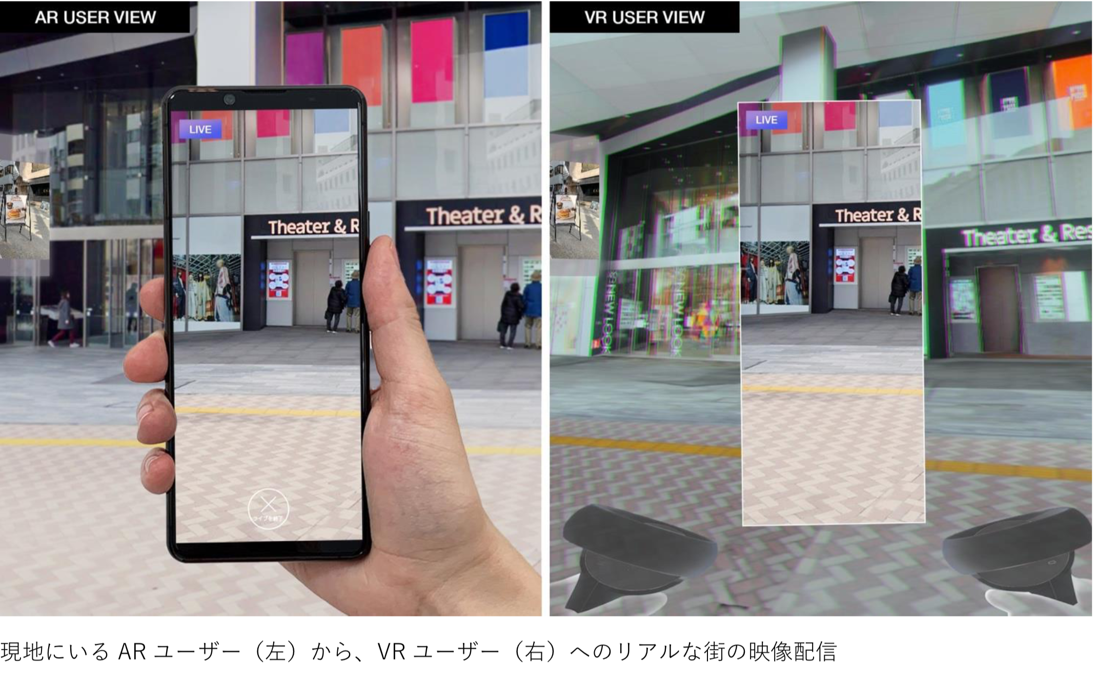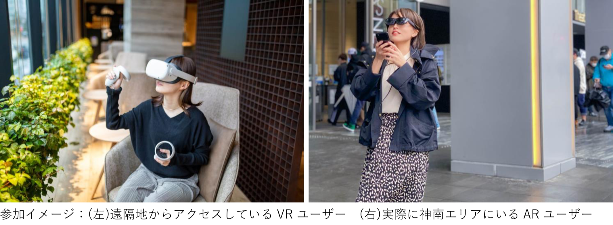 今回の実証実験では、3D都市モデルを活用して構築されたバーチャルな神南エリアに遠隔地からアクセスするVRユーザーと、実際に神南エリアにいるARユーザーとが、あたかも同じ空間を共有しながら共に周遊散歩体験をしているかのような体験を提供しました。渋谷の魅力を新たに発見してもらうことを目的に、現実空間とバーチャル空間中の同じ場所にその場所に関するAR/VR共通の空間コンテンツを設置しました。