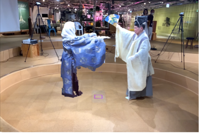 右:リアルタイムに転送された右側のボリュメトリックビデオの演者(ワキ)との共演(ARデバイスの視聴イメージ)