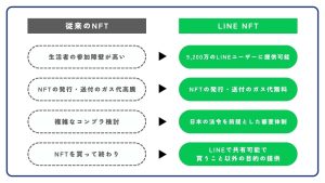 従来のNFTと比較し、LINE NFTが持つ特長は以下です。