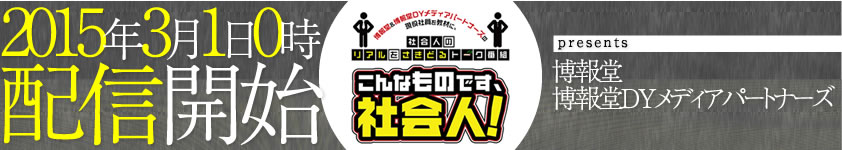 株式会社博報堂と株式会社博報堂DYメディアパートナーズは、2015年3月1日0時より、2016年新卒学生の採用活動解禁と同時に、就活生応援番組「こんなものです、社会人!」を生中継にてオンライン放映いたします。