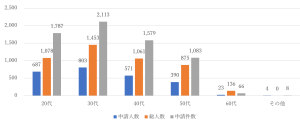 申請件数で最も多かったのは30代で2,113件、次いで20代で1,787件。