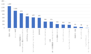 ニーズの高かった研修プログラムカテゴリとしては、語学(英語)、時事ニュース、ビジネススキル全般(ビジネススキルの網羅的な学習)、Excel/Powerpoint、システム・データ・プログラミング、経営管理、デジタルマーケティング。