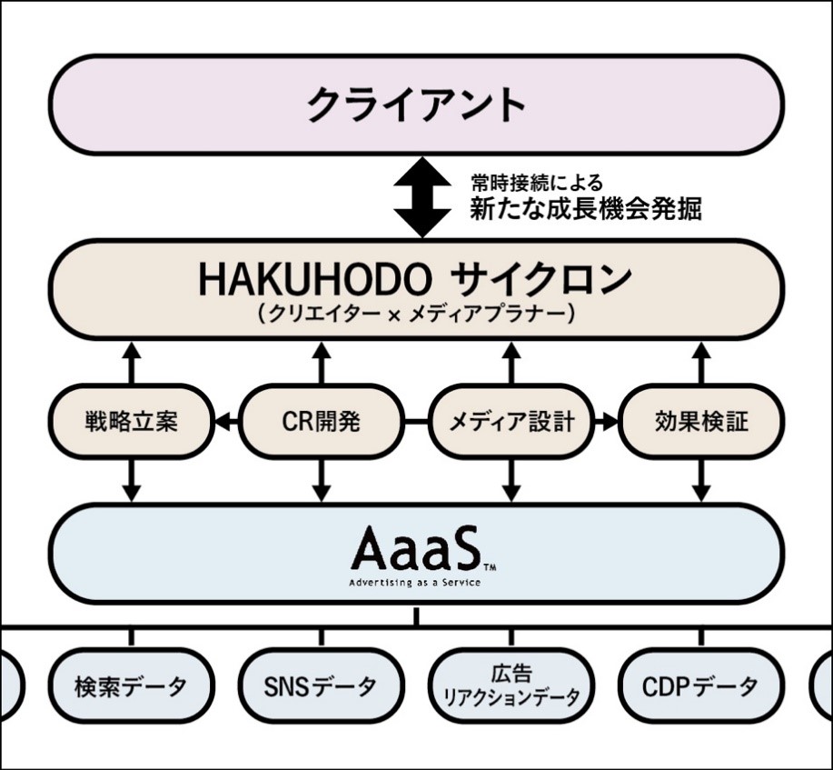 株式会社博報堂(以下 博報堂)、株式会社博報堂DYメディアパートナーズ(以下 博報堂DYメディアパートナーズ)、デジタル・アドバタイジング・コンソーシアム株式会社(以下 DAC)の3社横断の戦略組織である「HAKUHODO DX_UNITED」は、博報堂DYグループの提唱する“AaaS”に関連するソリューション群を活用し、様々な生活者データをもとにリアルタイムな生活者の気分をキャッチしながら、コミュニケーションアイデアを生み出し続け、企業のマーケティング課題に対応する、クリエイターとメディアプラナーの一体型チーム「HAKUHODOサイクロン」を発足いたしました。