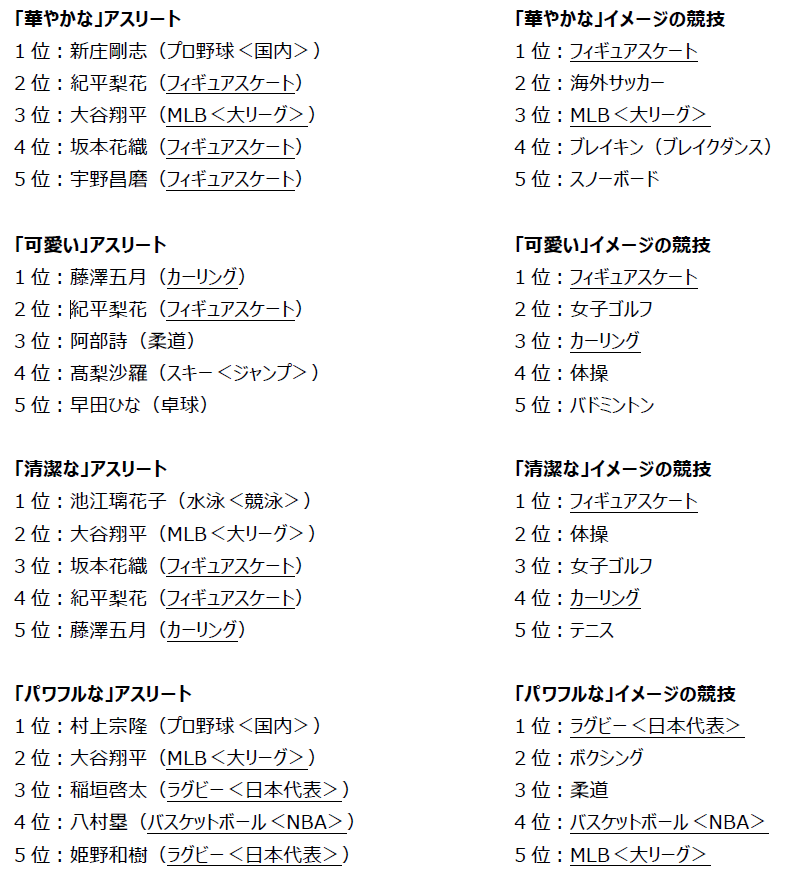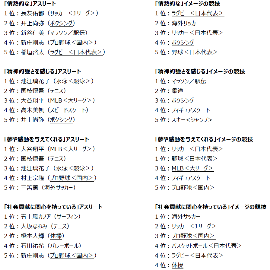 【 アスリート/競技 個別イメージランキング 】