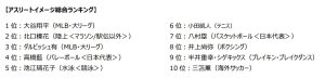 アスリート個別イメージでは、「華やかな」で坂本花織(フィギュアスケート)、「親しみやすい」で北口榛花(陸上<マラソン/駅伝以外>)、「可愛い」で早田ひな(卓球)、「リーダーシップがある」でダルビッシュ有(MLB・大リーグ)が1位となりました。