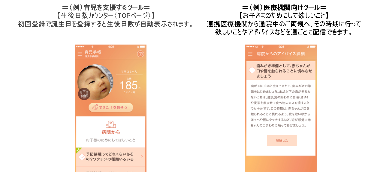 3歳までの育児期間の不安を解消 医療機関と連携したスマートフォンアプリ「育児手帳」 配信開始
