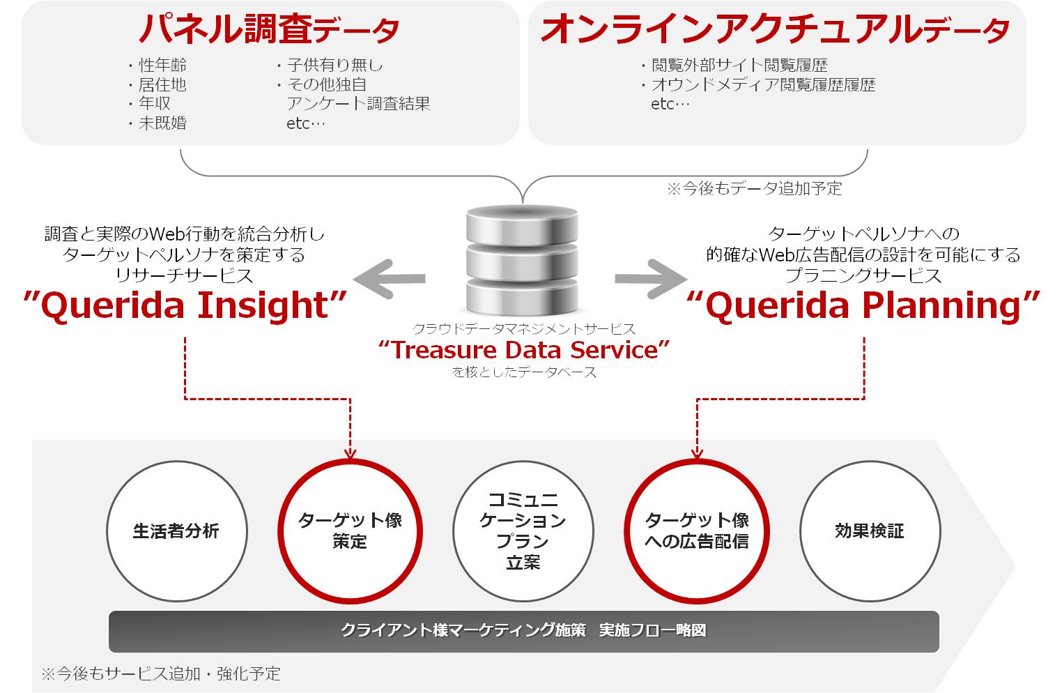 株式会社博報堂DYメディアパートナーズ(本社:東京都港区、社長:大森壽郎)と株式会社博報堂(本社:東京都港区、社長:戸田裕一)の協働の取り組みとして“生活者データ・ドリブン”マーケティング対応力強化を担う「DATA WiNGS(データウィングス)」※1(以下DATA WiNGS)は、生活者についてのパネル調査データとWeb閲覧等のオンラインアクチュアルデータを統合、分析し、広告主にとっての新規見込み客を発見する「Querida Insight(クエリダインサイト)」と、そこに対して的確な広告配信を可能にする「Querida Planning(クエリダプラニング)」の2つのサービス提供を開始いたします。