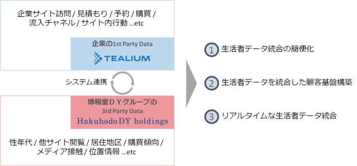 Tealiumは、企業の自社サイトのタグ・マネジメントに強みをもつ、リアルタイム統合マーケティングソリューションですが、今回共同開発したソリューションにより、企業が単体では取得できない、生活者の様々な情報(性年代、興味関心情報など)の簡便な統合と、データ統合をよりリアルタイムに行い、生活者の現在の状態に沿ったデータドリブンマーケティングを可能とし、企業のマーケティング活動の成功に貢献してまいります。