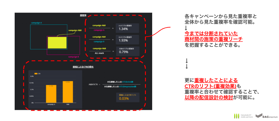 管理画面ではその設計上見ることができなかった、商材やキャンペーンを横断した重複リーチやインクリメンタルリーチを確認することができます。
