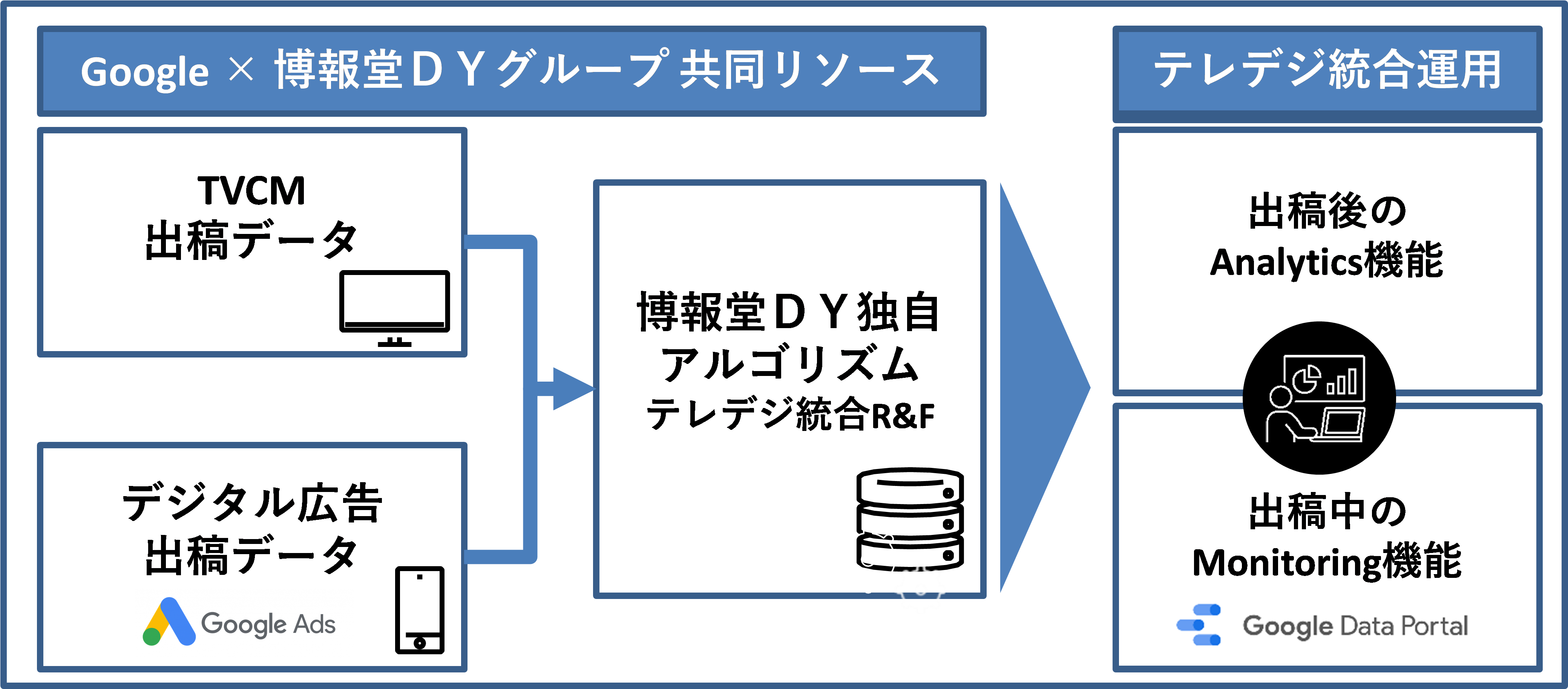 株式会社博報堂DYメディアパートナーズ(本社:東京都港区、代表取締役社長:矢嶋弘毅、以下 博報堂DYメディアパートナーズ)は、 テレビとデジタルの共通指標での統合運用と最適化を支援するソリューション”Tele-Digi AaaS”をGoogleが保有するツール及びデータと連携し、博報堂DYメ ディアパートナーズ独自のアルゴリズム(※特許取得済)を掛け合わせることで機能を強化したサービスの提供を開始します。