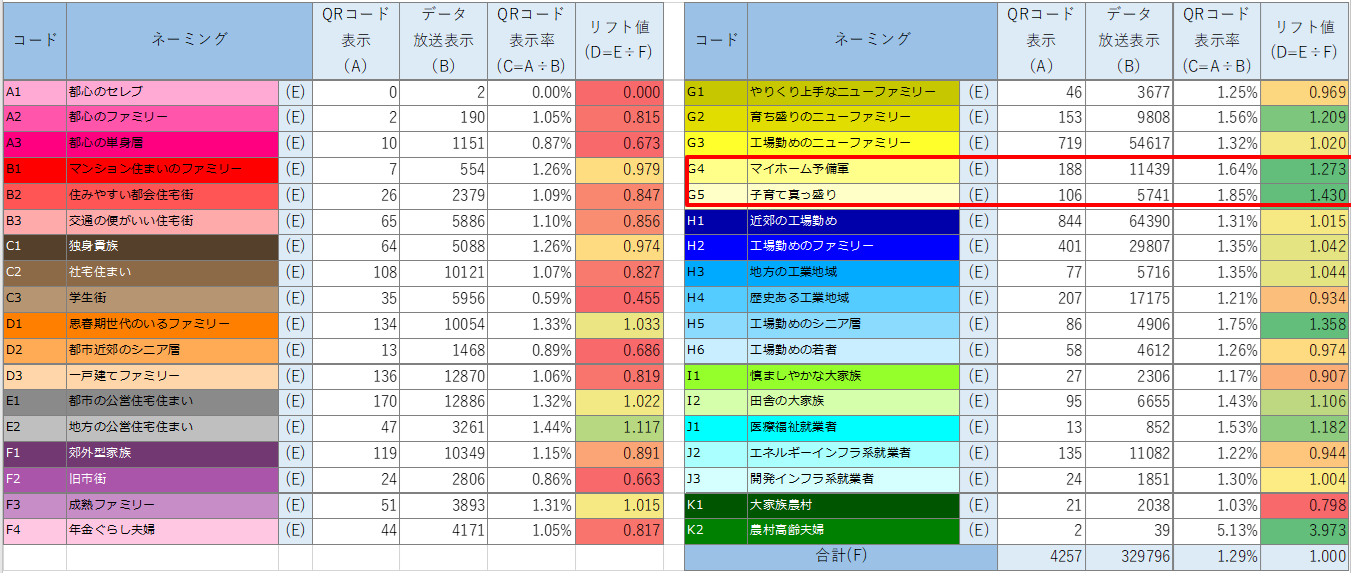 c-japanⓇセグメント別のターゲットリフト(数値)