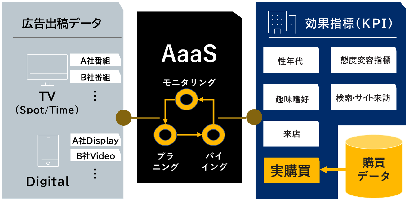 今回、新たなKPIへの対応として「オフライン購買データ」をAaaSへ連携することで、テレビCMやデジタル広告での、オフラインでの購買を起点としたAaaSソリューションの提供が可能となりました。