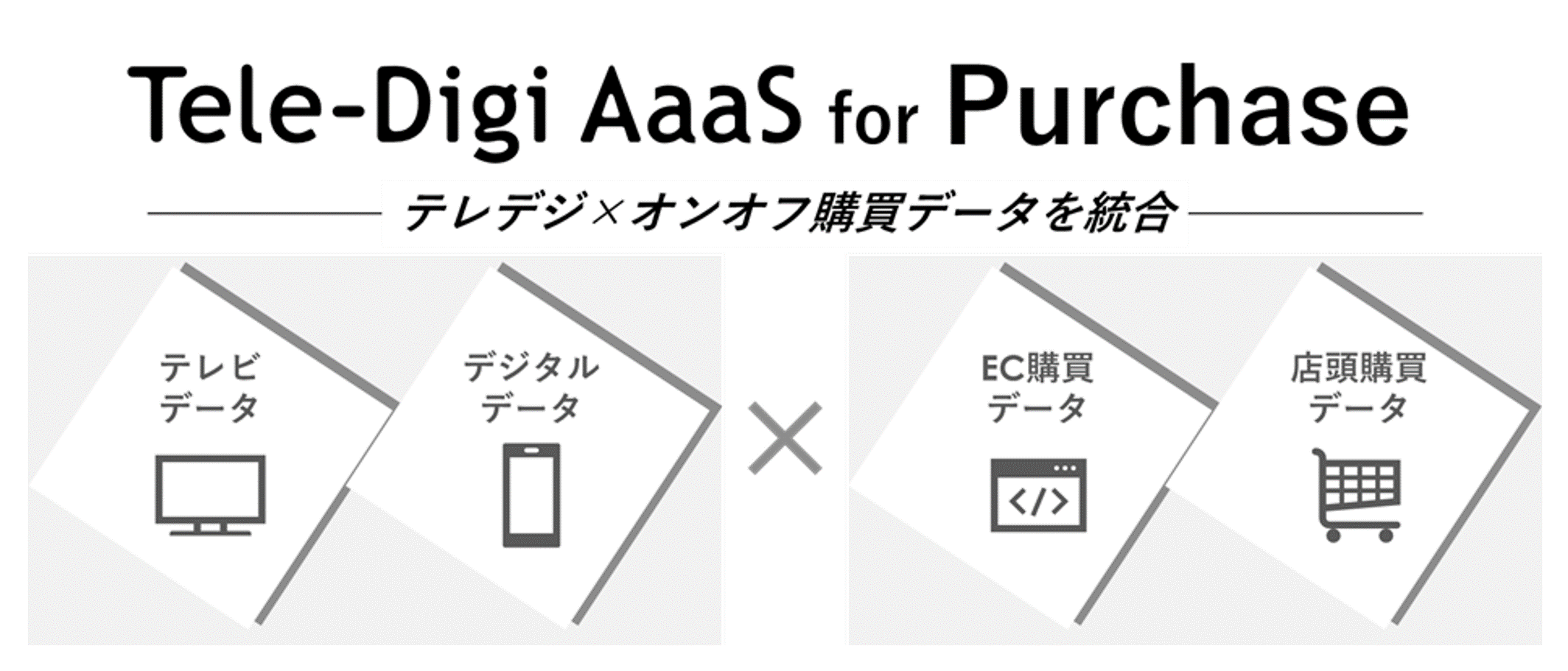 Tele-Digi AaaS for Purchaseは、購買に関連する多種多様なデータを統合することでオンライン/オフラインの購買やカスタマージャーニーにテレビ/デジタル広告がどのように寄与しているのかを可視化・統合管理し、最適な広告運用を目指すソリューションです。
