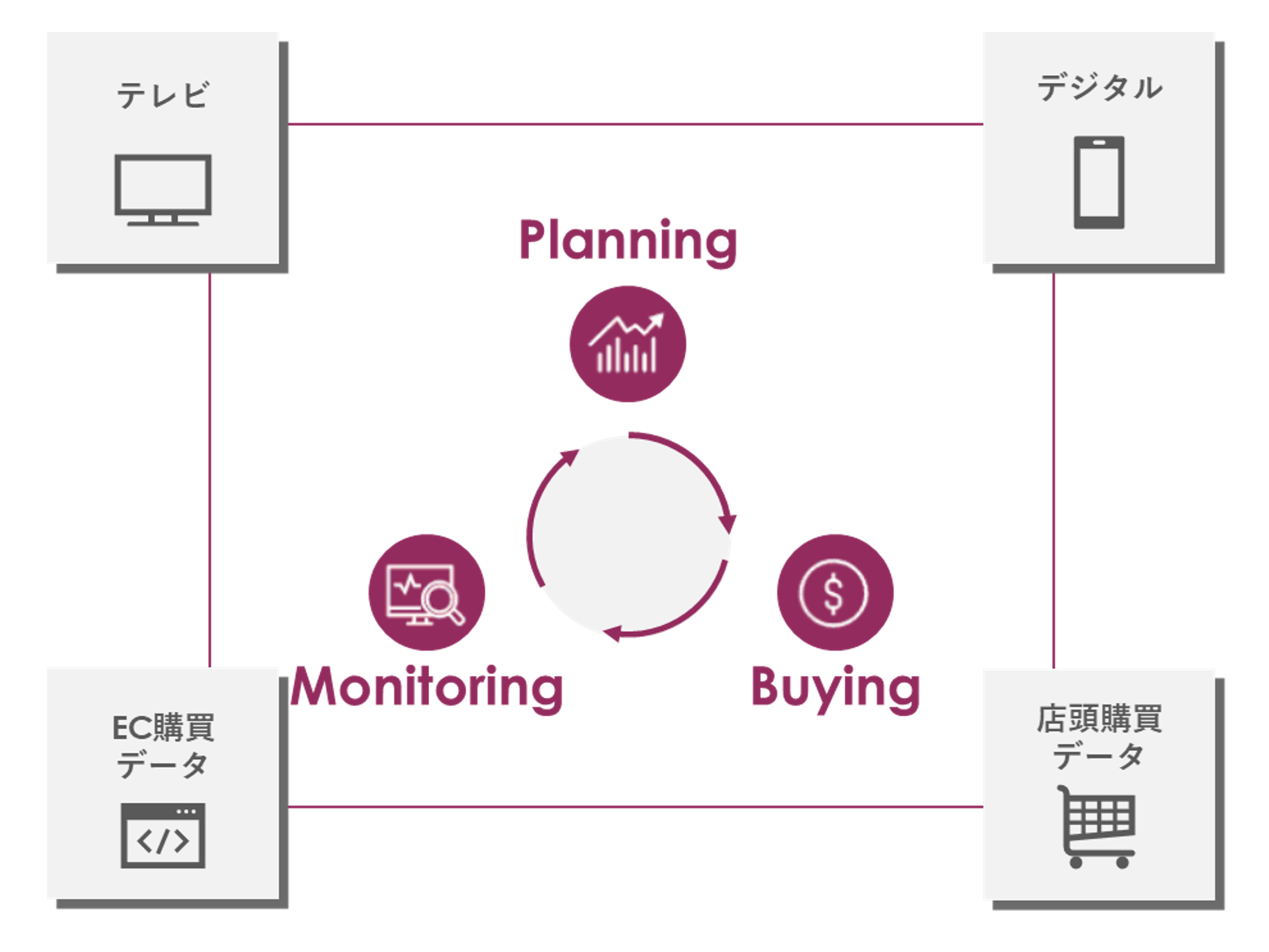 購買に貢献するテレビバイイングやデジタルターゲティングを実現し、実行力が担保された広告配信を行います