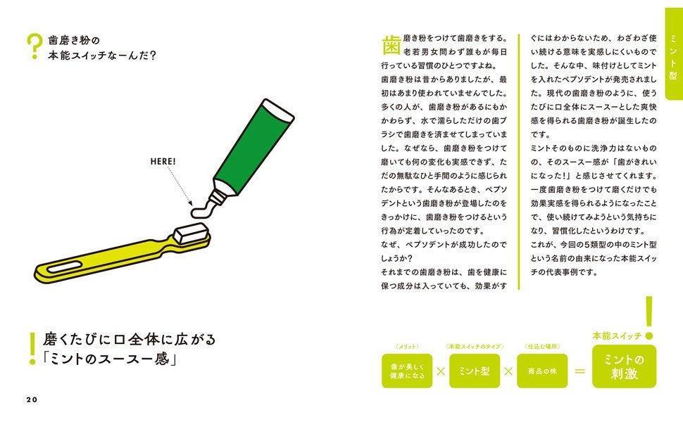 本書では、私たちが普段の業務を通じて発掘した様々な本能スイッチの具体事例を5つの「型」に分類して紹介していきます。新たなデジタルサービスを生み出そうとしている方、中期的に売れ続ける商品を開発したい方、マーケティング予算が少なく商品そのものを強くしたい方、人々が熱狂するコンテンツを制作したい方のヒントとなるような、「つい」クセになるポイントが満載です。