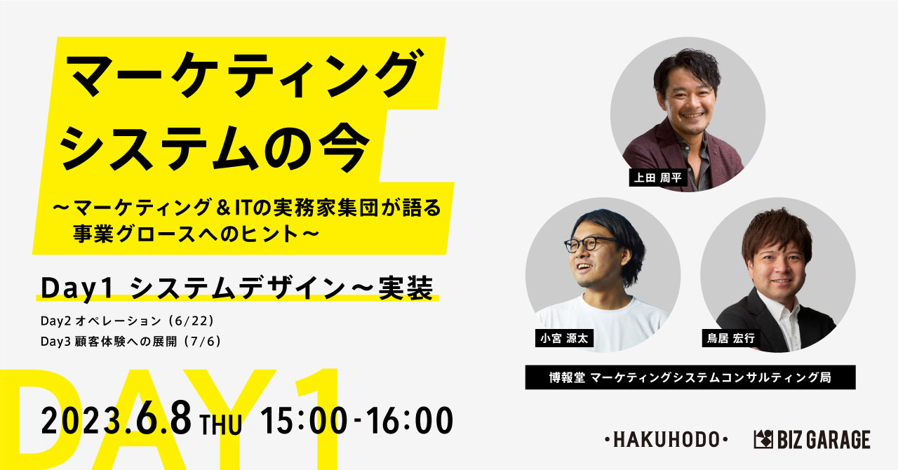 タイトル:『「マーケティングシステムの今」~マーケティング&ITの実務家集団が語る事業グロースへのヒント~ DAY1:システムデザイン~実装編』