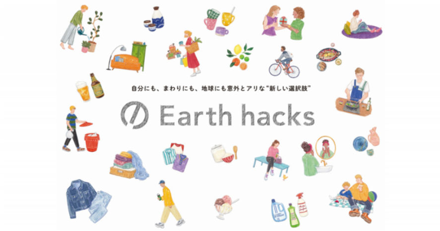 「Earth hacks」は、2021年11月に博報堂の新規事業開発組織「ミライの事業室」と三井物産の共同プロジェクトとしてスタートした、Earth hacks株式会社のサービスです。Z世代をはじめとする脱炭素に関心がある方や、まだよく知らないという方にも脱炭素に向けた活動を身近に感じてもらえるよう、自分の生活にも取り入れたいと思えるライフスタイルやエシカルな商品の情報を提供したり、生活者の声をもとに、脱炭素関連商品・サービスや事業の開発を目指す共創型のプラットフォームです。