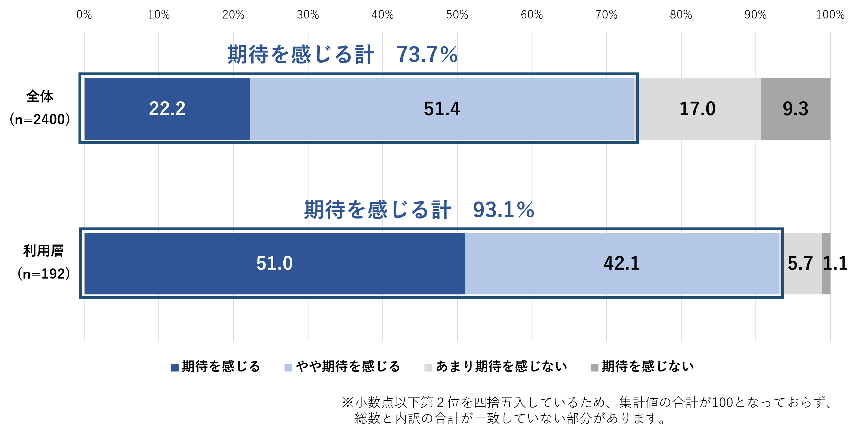 AI技術全般への期待について聞いたところ、AIに「期待を感じる」との回答は全体で73.7%。