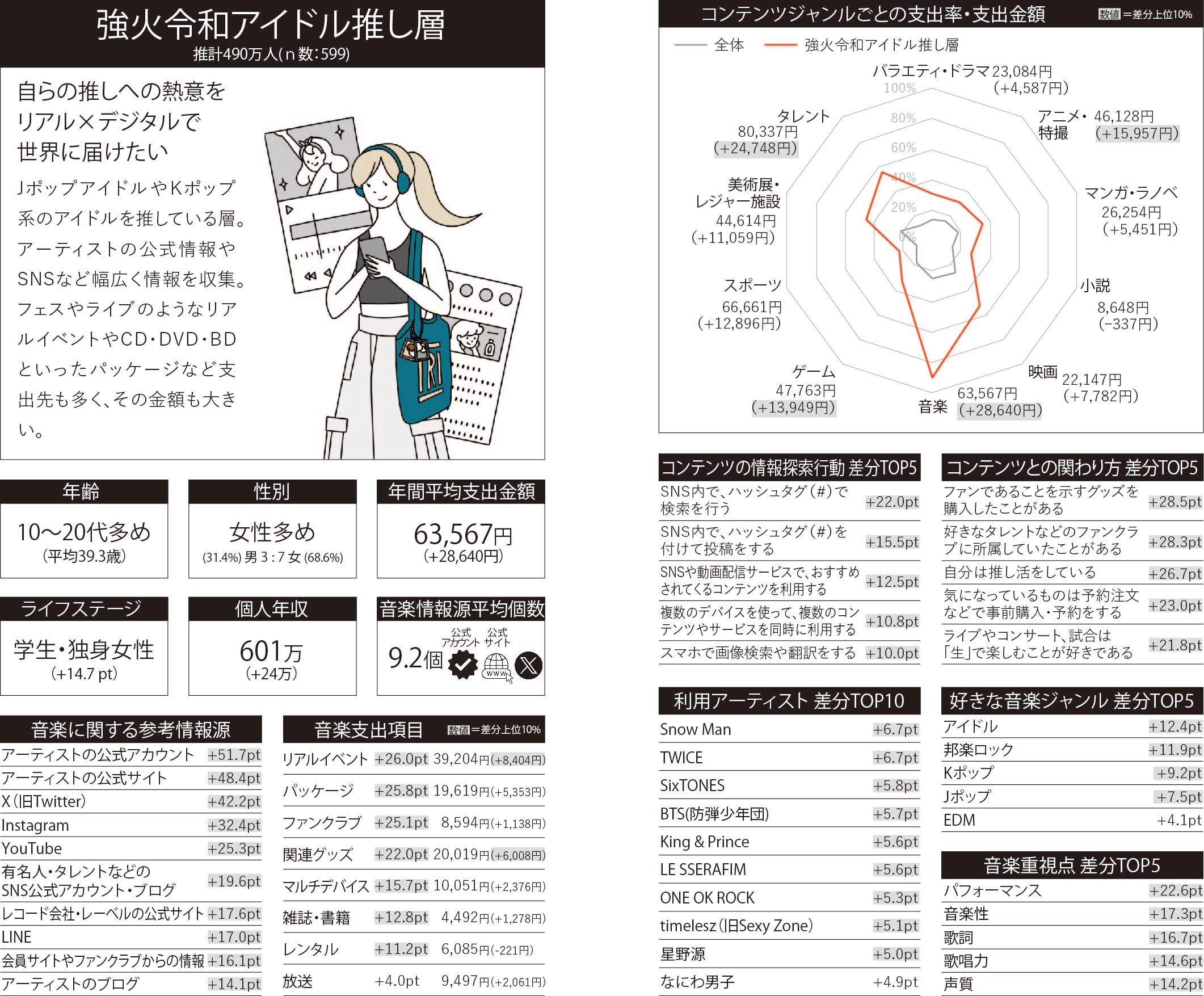 〇 各クラスターの特徴をデータやイラストで解説(例:強火令和アイドル推し層)