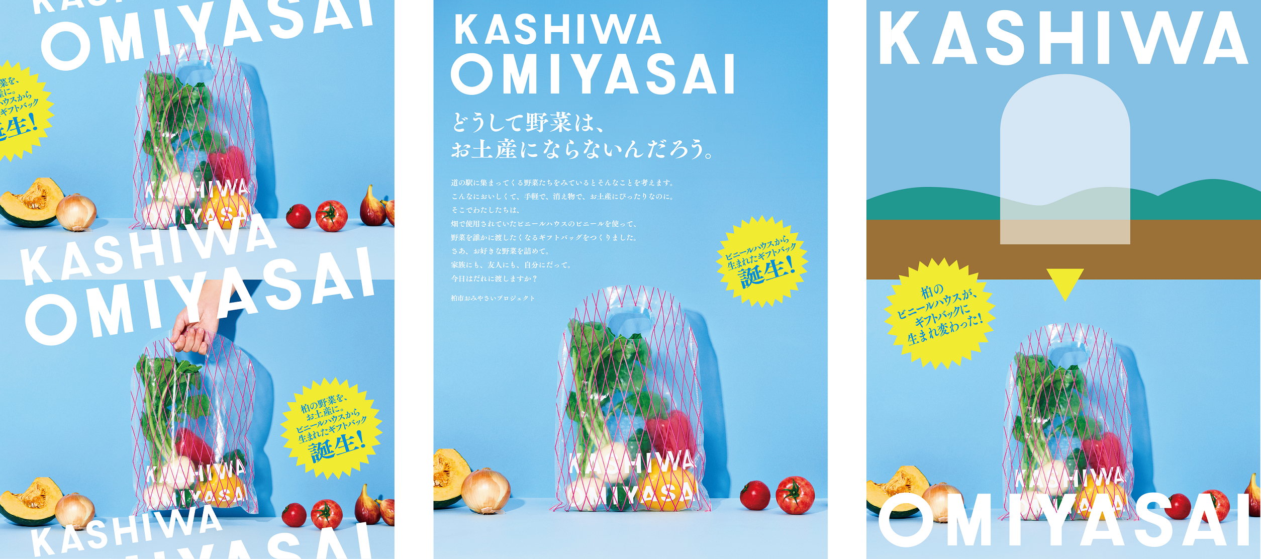 株式会社博報堂の若手クリエイターチーム「CREATIVE TABLE最高」が進める地域課題解決プロジェクト「じもシゴト」は、千葉県柏市、道の駅しょうなん(千葉県柏市)と共同で、「柏市産の野菜を、おみやげに。」をコンセプトに、新しいお土産文化「おみやさい」を発信する「おみやさいプロジェクト」を始動しました。11月9日(土)には“道の駅しょうなん”にて、三者が共同で開発した、柏市の農業で利用され廃棄されるはずだったビニールハウスのビニールからうまれたギフトバック「OMIYASAI BAG」を使って、柏市の野菜をお土産に生まれ変わらせるPRイベントを開催いたします。