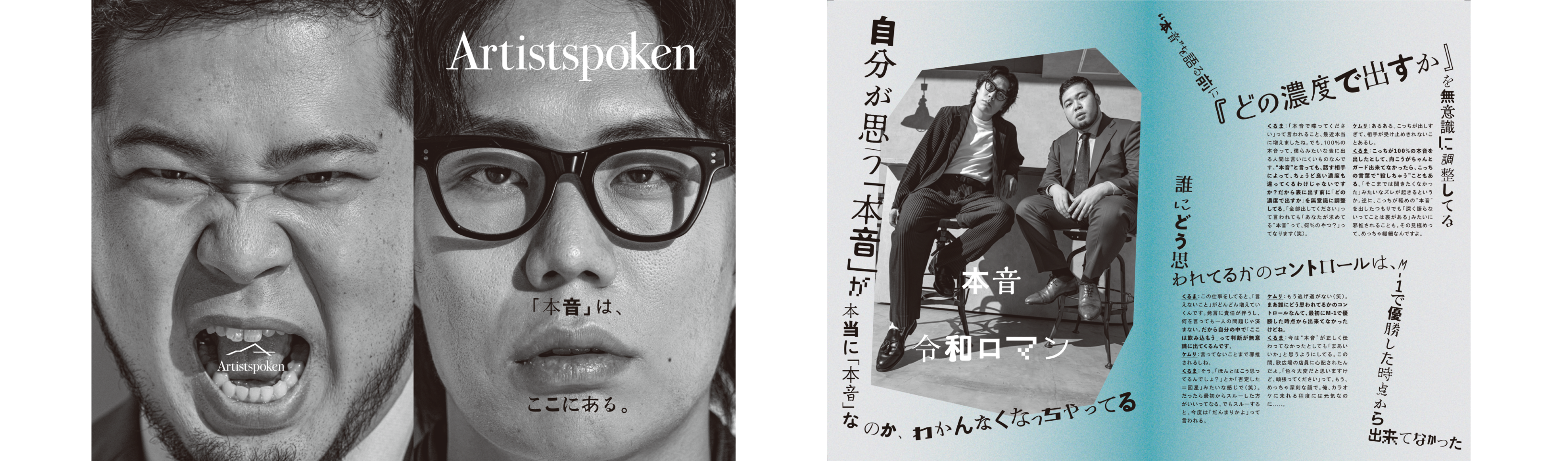 Artistspokenで語ることの意義や、この時代における“本音”について、令和ロマンやAマッソ加納ら総勢5組にインタビューした冊子『本音ZINE』を制作。過去にArtistspokenに出演したアーティストの“本音のパンチライン”も掲載しています。7/1より順次、都内の書店やカフェにて無料で配布します。