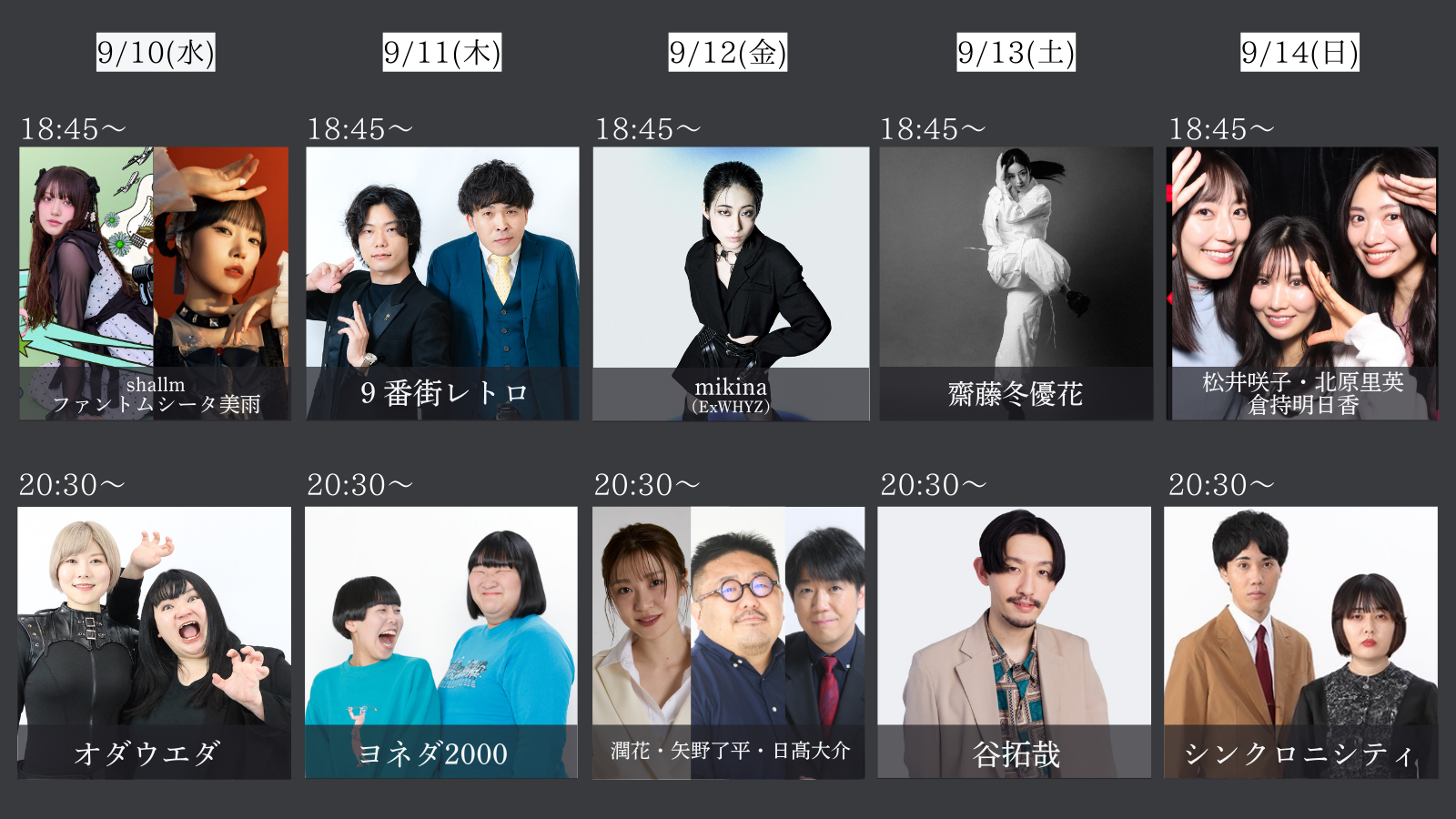 shallm×ファントムシータ美雨(番組名「お茶しよ。」)、オダウエダ、9番街レトロ、ヨネダ2000、mikina(ExWHYZ)、潤花×矢野了平×日髙大介、齋藤冬優花、パンプキンポテトフライ ⾕拓哉(ゲスト:カムバック)、松井咲子×北原里英×倉持明日香(番組名「キリ番踏んだらカキコして」)、シンクロニシティ