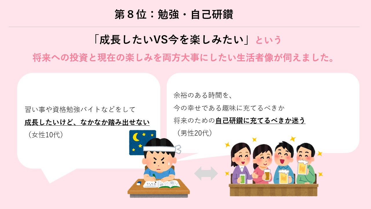 仕事もプライベートの時間も諦めきれず日々奮闘しているものの、良い塩梅が見つけられずプライベートが圧迫されがちな生活者の苦悩がうかがえました。