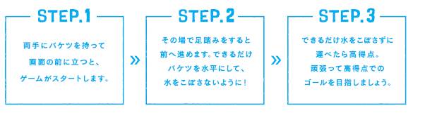 本イベントのメインコンテンツである体験型バーチャルゲームでは、スクリーンとデジタルバケツを使って、マダガスカルの子どもたちが毎日家族のために行っている、水を運ぶ体験をしていただきます。