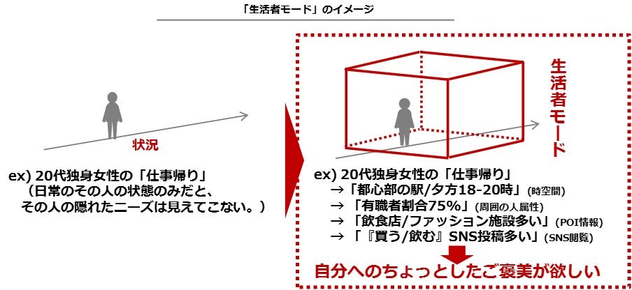 に着目し、生活者の「状況」に内包されるインサイト(潜在ニーズ)を「生活者モード」と定義。