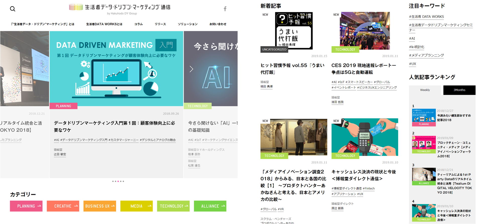 このたび、サイトデザインの変更、記事検索機能や今注目されている記事がわかるランキングの追加などにより、情報が探しやすく、気軽にお読みいただけるメディアを目指してサイトリニューアルいたしました。データドリブンマーケティング領域に関心をお持ちの皆様の情報収集にお役立ていただけるメディアとなれますよう、今後も最新のコンテンツを発信いたします。