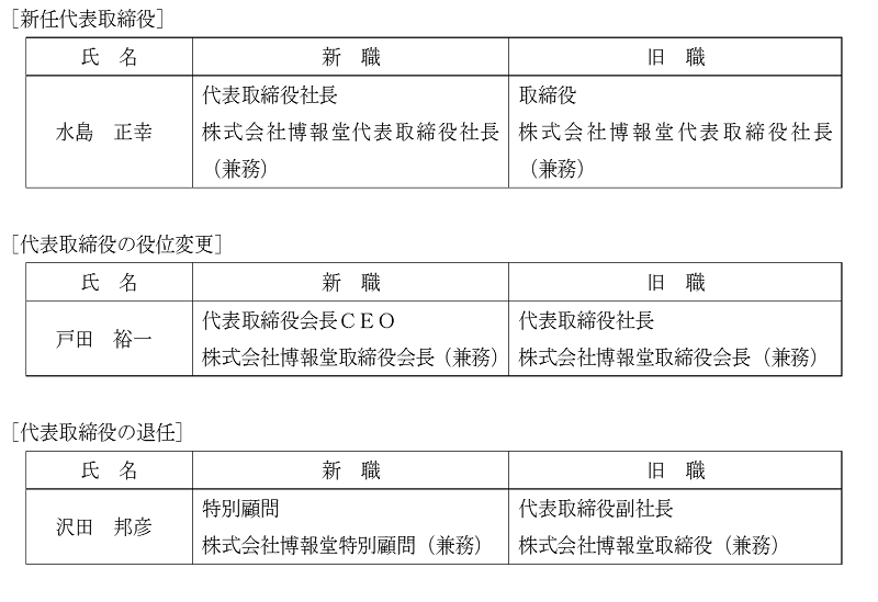 博報堂DYホールディングス、代表取締役の異動および役員の異動に関するお知らせ