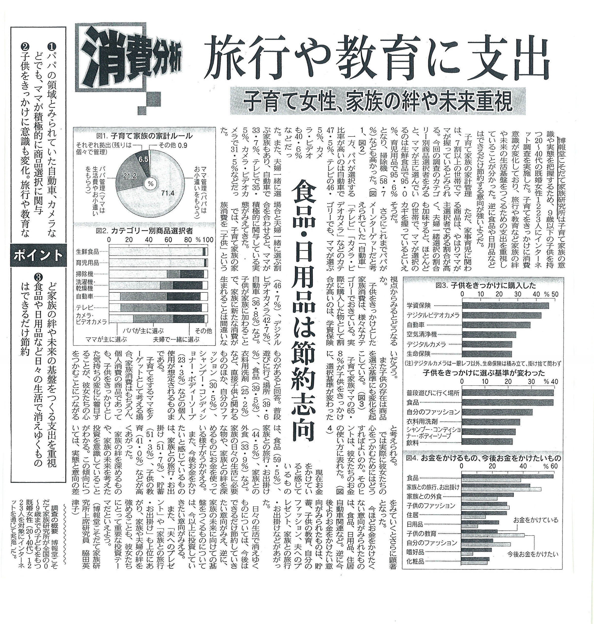 旅行や教育に支出 子育て女性、家族の絆や未来重視 食品・日用品は節約志向
