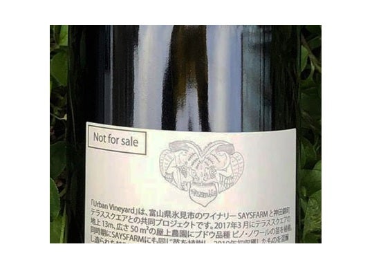 ワインボトルの裏面には、URBAN VINEYARD プロジェクトと神田錦町をイメージしたロゴが描かれている。