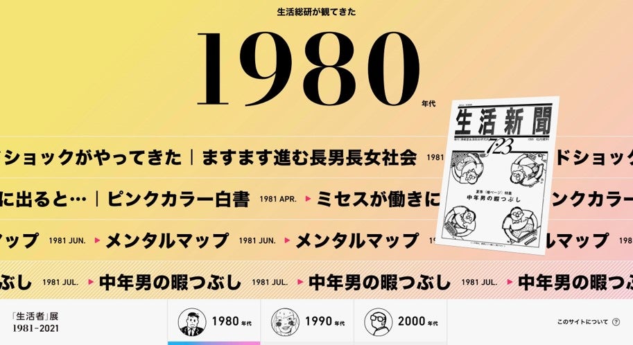 株式会社博報堂(東京都港区、代表取締役社長:水島正幸)のシンクタンク博報堂生活総合研究所は、設立40周年を記念し、特設サイト【人間をまるごと観るOnline Museum 「生活者」展1981-2021】を開設いたしました。