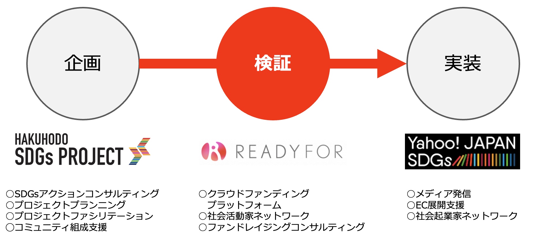 そのような状況に対応するため、企業の事業開発やマーケティング活動をSDGsの視点から支援してきた博報堂SDGsプロジェクトは、社会課題解決型クラウドファンディングのファンドレンジングに数多くの実績を持つREADYFORと、SDGsをテーマにさまざまな社会課題やその取り組みを紹介する情報メディア Yahoo! JAPAN SDGsと共同で、それぞれの知見とリソースを掛け合わせ、SDGsの視点で商品・サービスの企画から受容性の検証、そして実装までを一気通貫で支援するプログラム「Social Booster™」を開発しました。