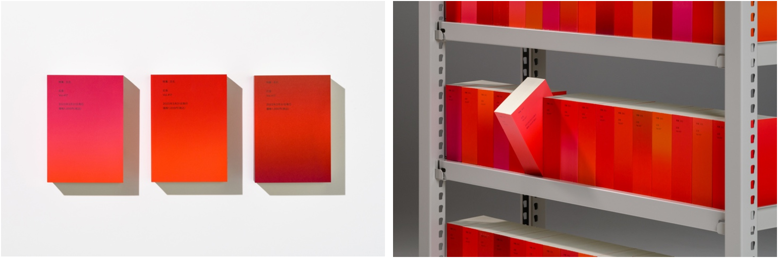 今号の表紙は、1冊1冊色味が異なる「赤」のグラデーションです。人類が最初に使用した色とも言われる「赤」をシンボルカラーとし、シルクスクリーンという印刷技法で、職人が様々な赤を組み合わせながら手作業で刷り上げました。