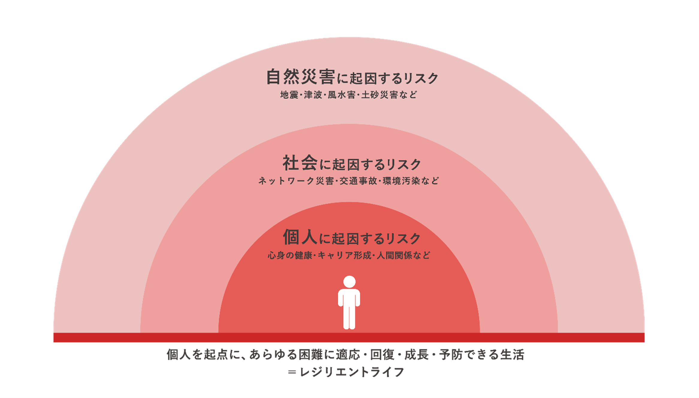 自然災害のリスクをはじめ、社会に起因するリスク、そして個人に起因するリスクに至るまで、あらゆるリスクが生み出す困難を乗り越えるための「レジリエンス」を高め、より豊かな生活の実現を目指す、新しいライフスタイルです。