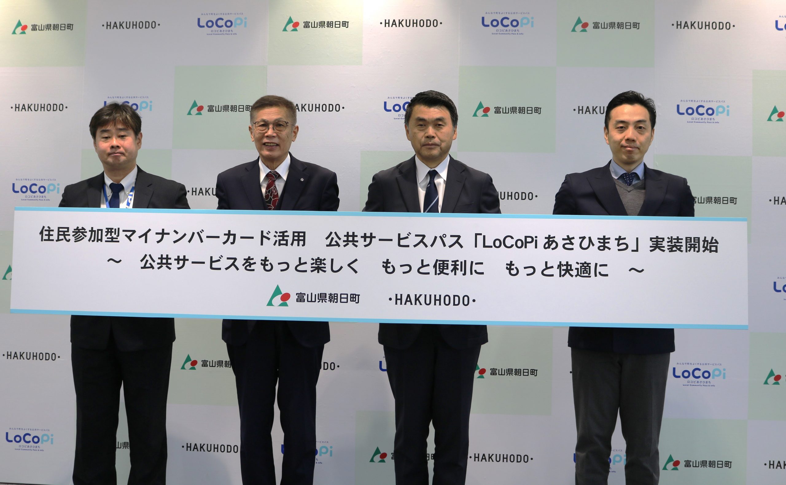 富山県朝日町(町長:笹原 靖直、以下 朝日町)と株式会社博報堂(本社:東京都港区、代表取締役社長:水島正幸、以下 博報堂)はマイナンバーカードを活用した公共サービスパス「LoCoPi(ロコピ)あさひまち」のサービス提供を開始しました。LoCoPiあさひまちは、公共交通・公共施設の利用や子ども・高齢者の見守りサービス、地域ポイントの獲得・利用をマイナンバーカード1枚で行うことのできる、全世代の住民を対象にした生活者参加型のサービスです。
