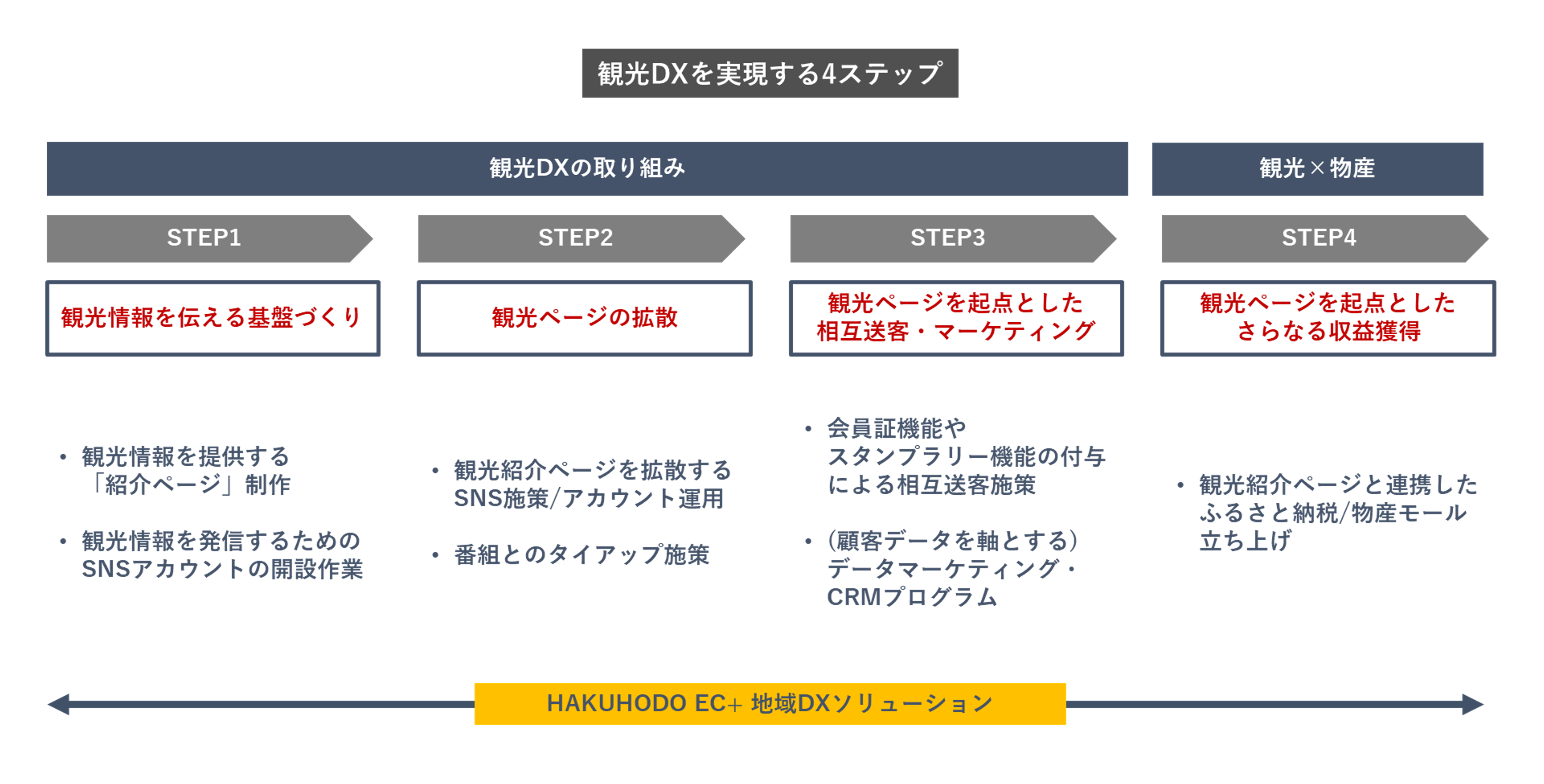 株式会社博報堂(本社:東京都港区、代表取締役社長:水島正幸)のEC領域に特化した組織横断型プロジェクト「HAKUHODO EC+」は、日本各地域の地方自治体・事業者のEC/DX支援を行う「地域DXソリューション」の新たなメニューとして、各地域の物産から観光までを統合的に支援する「観光DXソリューション」を提供開始いたしました。