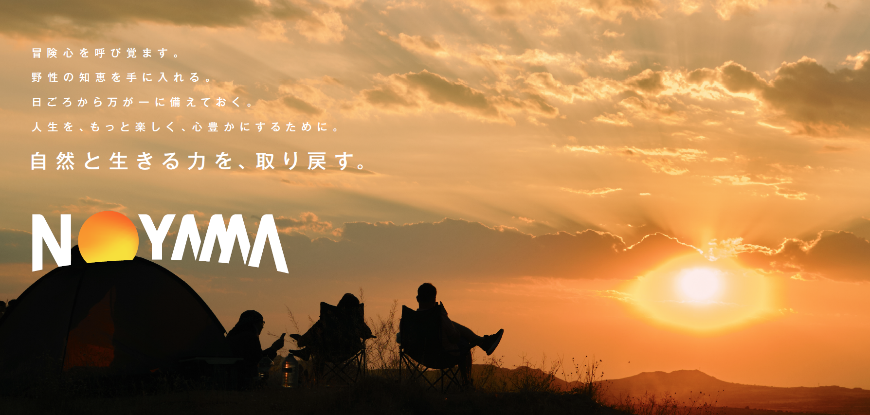 「株式会社NOYAMA」の社名の由来は、原っぱや野山を駆け回った子どものころの原風景を想起し、そのような原風景への回帰や自然の中での冒険を求める人々へ、豊かなアウトドアの時間や新たなアウトドアの体験価値を提供したい。その様な思いから「NOYAMA」という社名にしており、それをプラットフォームサービス名称にもしています。