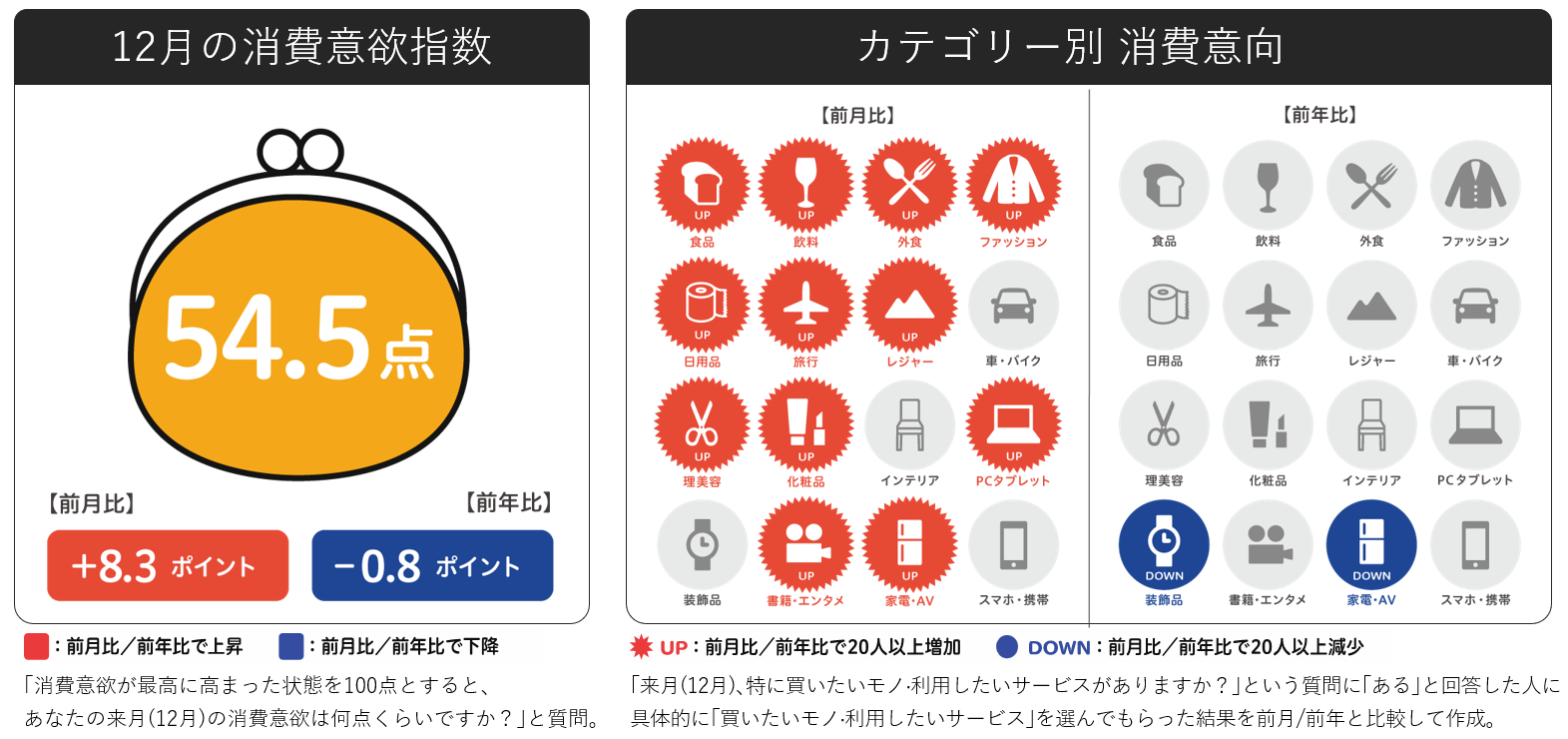 Point1 年末年始に向けた消費意欲は前月から大幅上昇。女性の意欲向上が目立つ