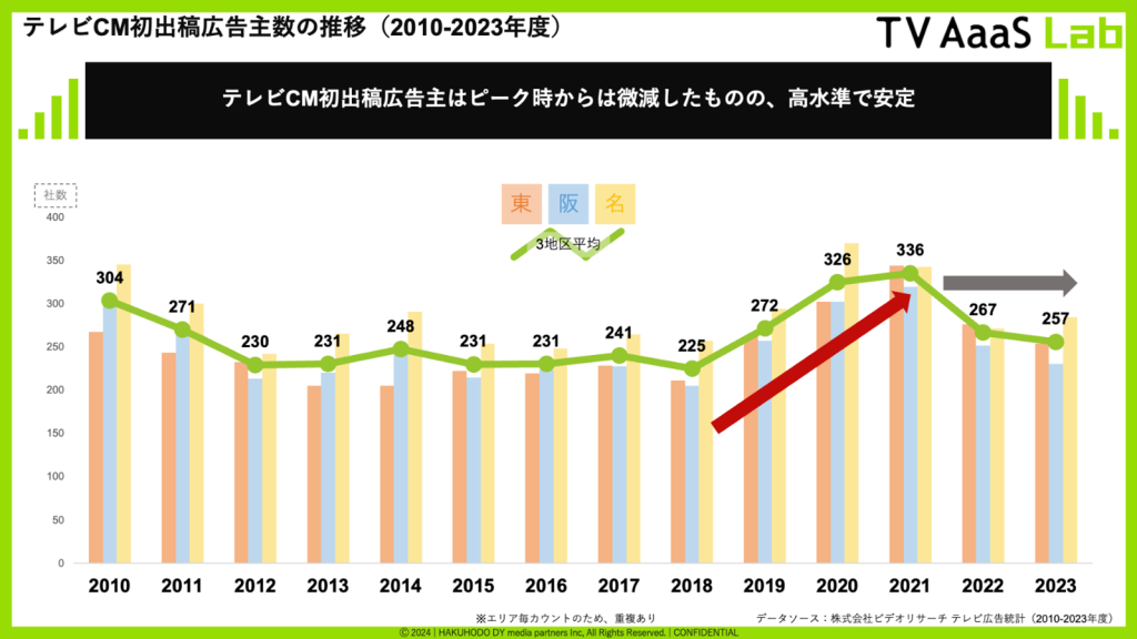 テレビCM初出稿広告主の定義:関東・関西・名古屋いずれかのエリアでテレビCMに初出稿を行った企業