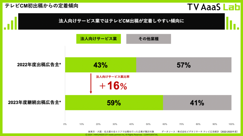 3. 法人向けサービス業ではテレビCM出稿が定着しやすい傾向に