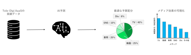 Tele-Digi AaaSに蓄積された各広告主の出稿実績データに基づき、AIで広告主ごとに最適なメディアシミュレーションを提供