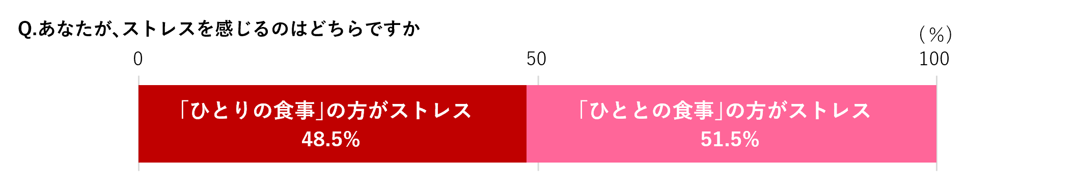 ストレスを感じるのは、「ひとりの食事」が48.5%で、「ひととの食事」51.5%と同程度でした。