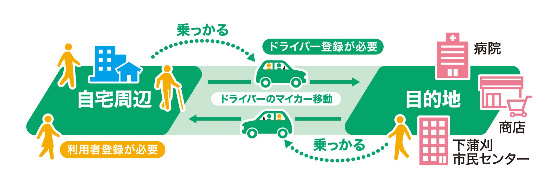 本運行サービスは、住民がドライバーとなり、マイカーを使って送迎する交通サービスです。協議会に登録したドライバーと利用者を、博報堂DYグループが開発したシステム上でマッチングし、目的地までの移動を支援します。