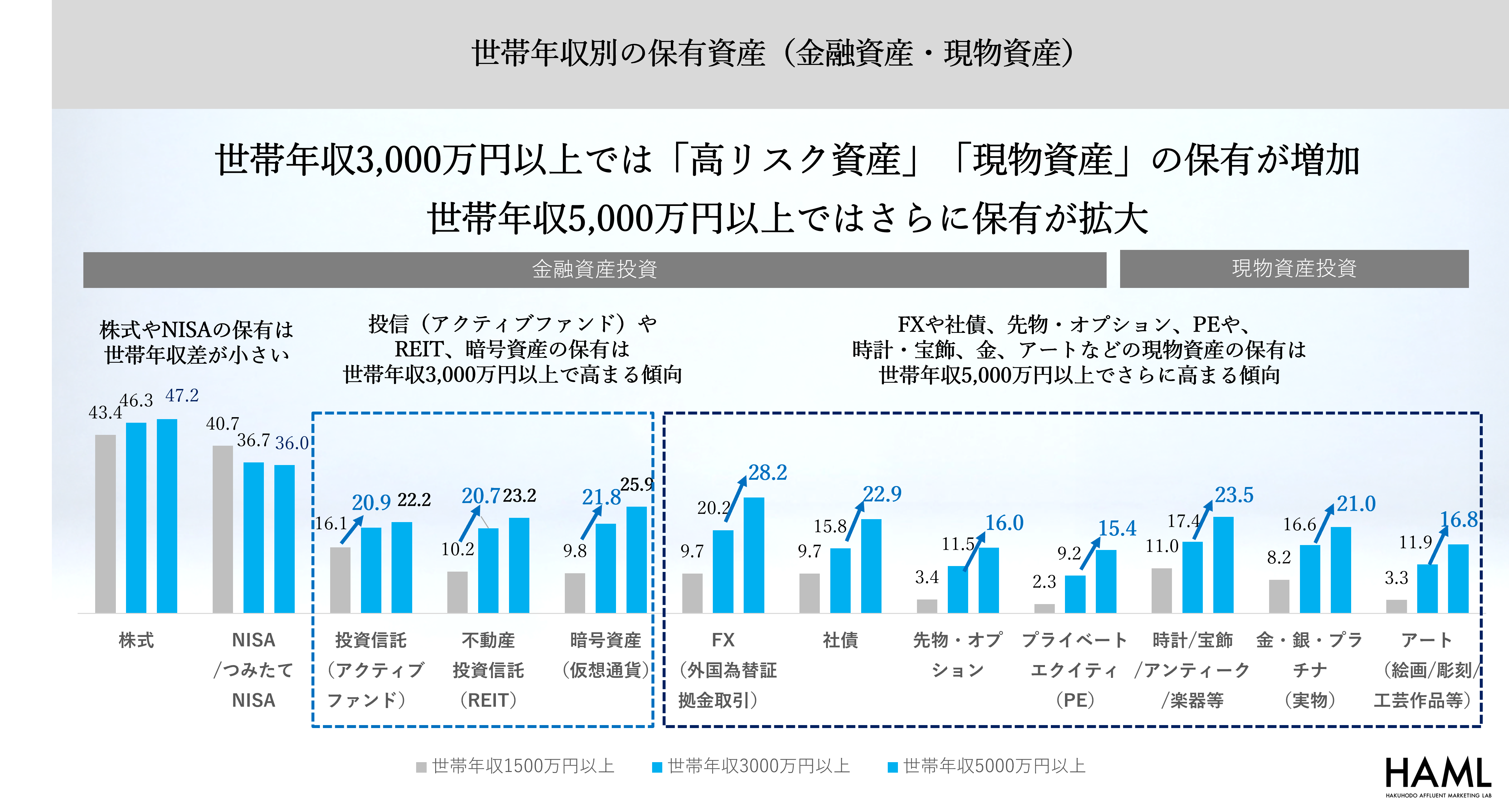 ■世帯年収3,000万円以上で「リスク資産」や「現物資産」の保有が拡大。