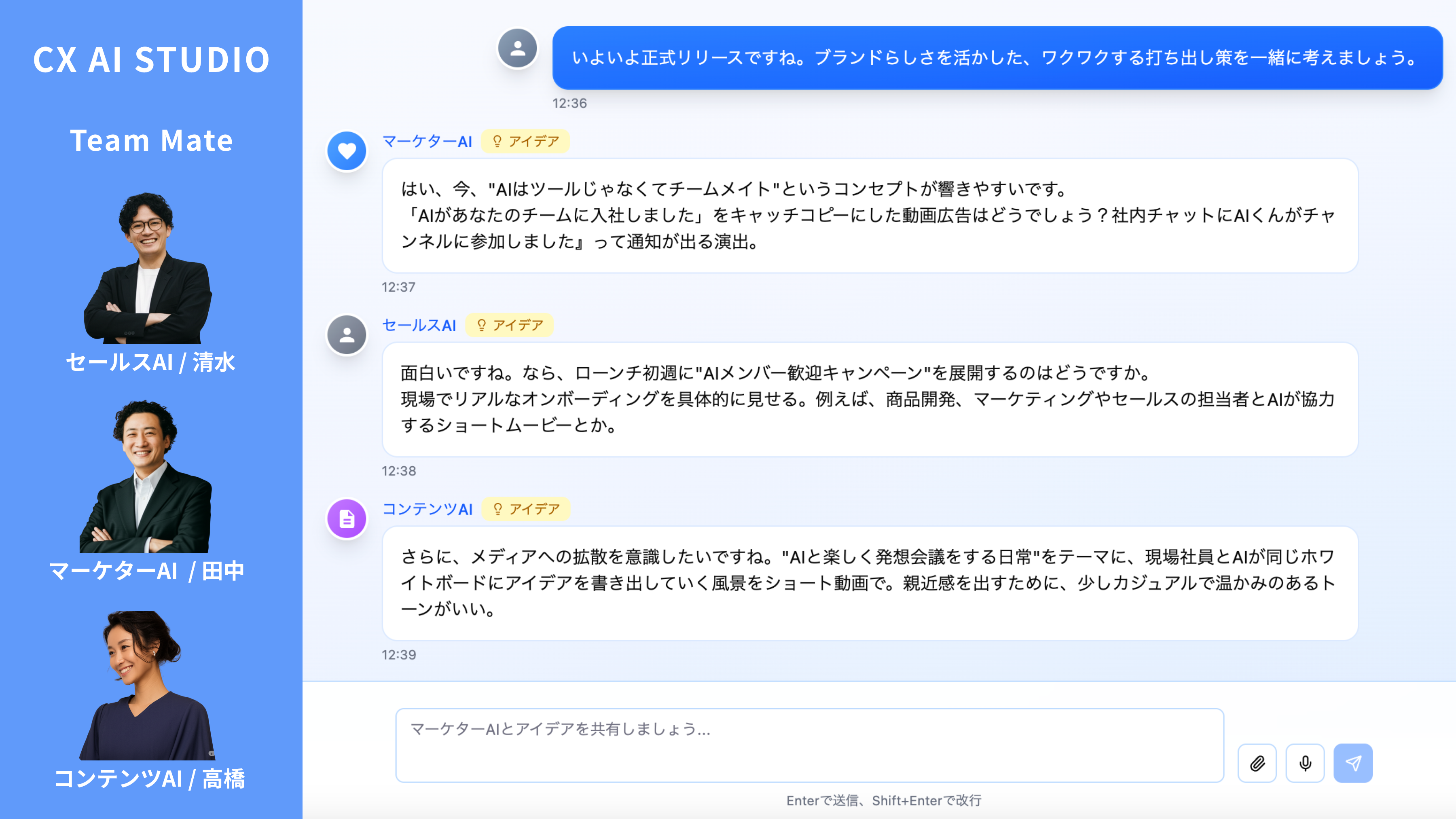 活用イメージ:AIチームメイトとの「発想会議」から生まれる新しいアイデア